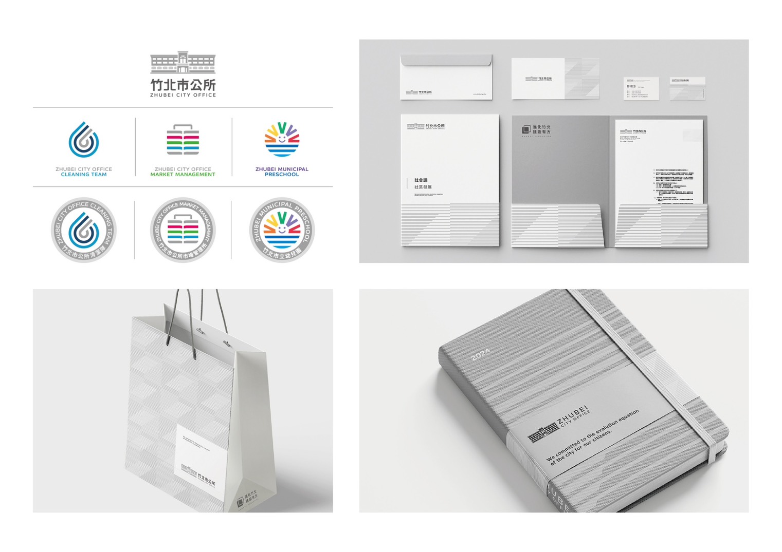 由銘傳大學商業設計系蘇文祥助理教授設計指導,結合院系產學合作模式,與睛點設計石哲安設計師共同策劃執行。計畫以「城市美學再造」為核心理念,全面建構竹北市公所識別系統,涵蓋公所主識別、各單位應用視覺設計及整體形象延伸,展現現代化、永續與在地共融的城市精神。