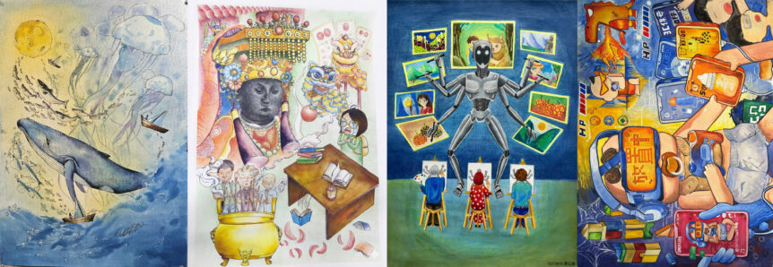 本次獲獎作品由商業設計學系馮承芝副教授、陳郭益言助理教授與周曉蘭講師共同指導,透過「設計繪畫」課程引導學生觀察生活議題並轉化為創作靈感,課程更結合全國美展競賽機制,建立完整創作、校內選件、送件參賽的培養流程。值得一提的是,銘傳校內評選階段亦邀請姊妹校,瑞士EPAC歐洲藝術學院(École Professionnelle des Arts Contemporains)來台交流的教授兼法國知名繪本藝術家Laurent Tardy,共同參與校內評審,不僅提升選件的專業性,也促進國際藝術交流。